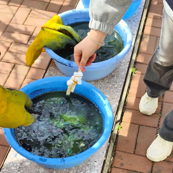 此次扎染活动不仅让同学们沉浸式体验非遗技艺的独特魅力,更在传统美学的浸润中提升了文化素养。随着一染一晾的创作,大家深刻领略到传统文化的深厚底蕴与无穷魅力,进一步激发了传承弘扬中华优秀传统文化的使命感与责任感。